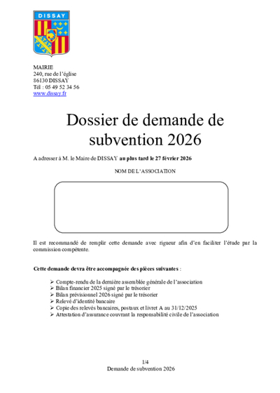 Formulaires administratifs Partager Retrouvez ici les formulaires administratifs qui pourraient vous être utiles. Année Toutes20262025202420232022202120202019201820172016201520142013201220112010 Filtrer Effacer 5 documents Fichier Formulaire de demande de subvention des associations Année 2026 Fichier DOSSIER DE DEMANDE DE SUBVENTION Fichier Demande de diagnostic des installations d'assainissement Lors d'une vente immobilière Fichier Dossier d'assainissement non collectif À transmettre à Eaux de Vienne Pagination Page courante 1 Page 2 Page suivante Dernière page