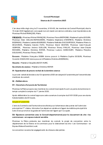 Fruits du travail des commissions et des services municipaux, certaines décisions doivent faire l'objet d'une délibération votée en séance du Conseil municipal. Retrouvez toutes ces délibérations depuis 2014.